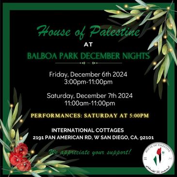 Welcome to the House of Palestine! Thank you for visiting our website. We hope you will also visit our house in Balboa Park in person.